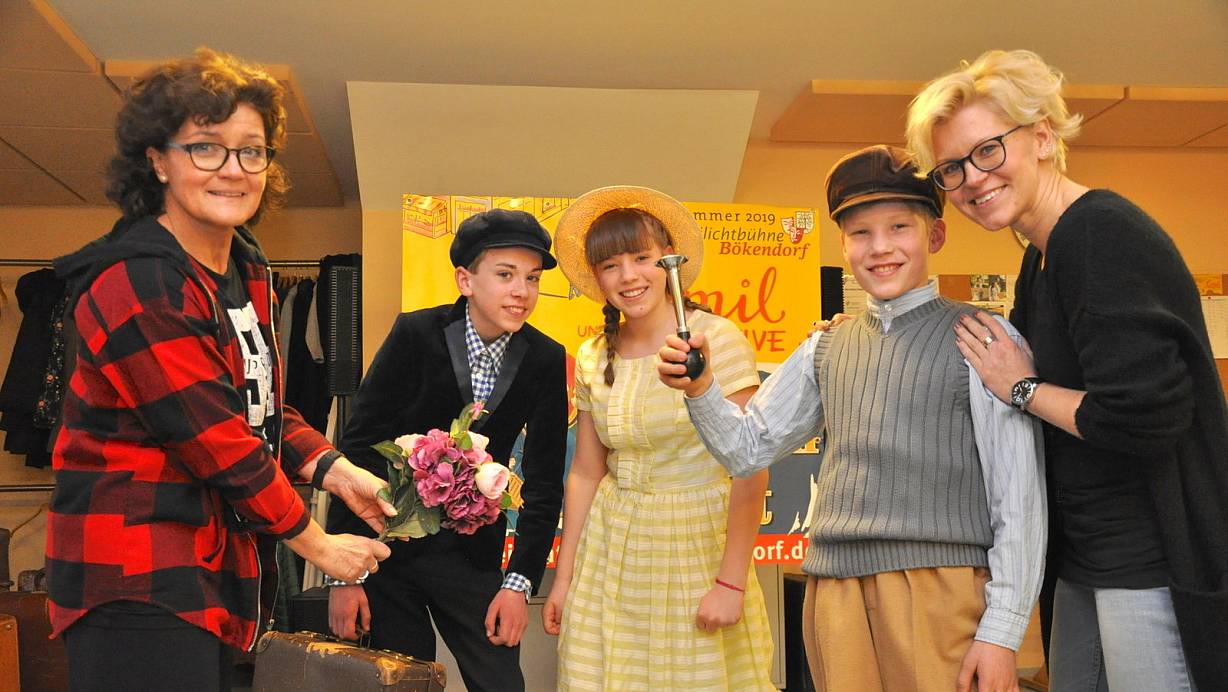 Und es sei ein Stück, das durchaus auch Pointen für die Erwachsenen liefere. Die Hauptrollen spielen Magnus Knipping (13) als Emil, Luca Schrick (10) als Gustav mit der Hupe und Therese Becker (12) als Pony Hütchen. Ralf Ahlemeier schlüpft in die Rolle des Diebes. Sie alle haben mehrjährige Bühnenerfahrung.