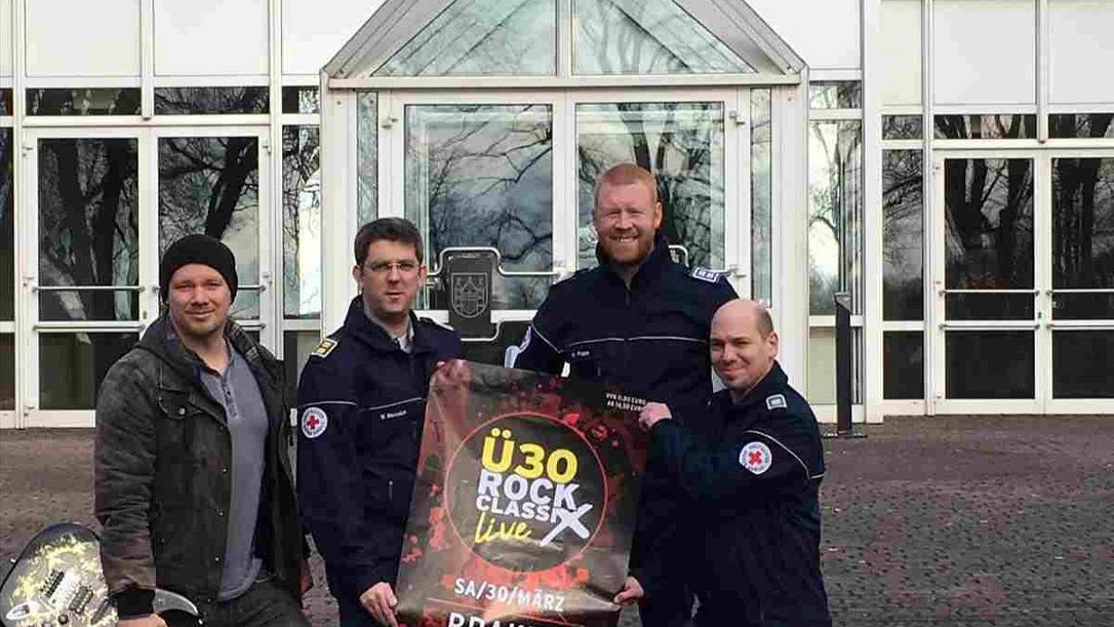 Die Band "Sellotape" aus Bad Driburg wird bei der Ü30-Party in Brakel spielen und damit das Deutsche Rote Kreuz im Kreis Höxter unterstützen. Darüber freuen sich Gitarrist Jan Düker, (v. l.) sowie Michael Weinreich, Matthias Pape und Patrick Eggers vom DRK. | © privat