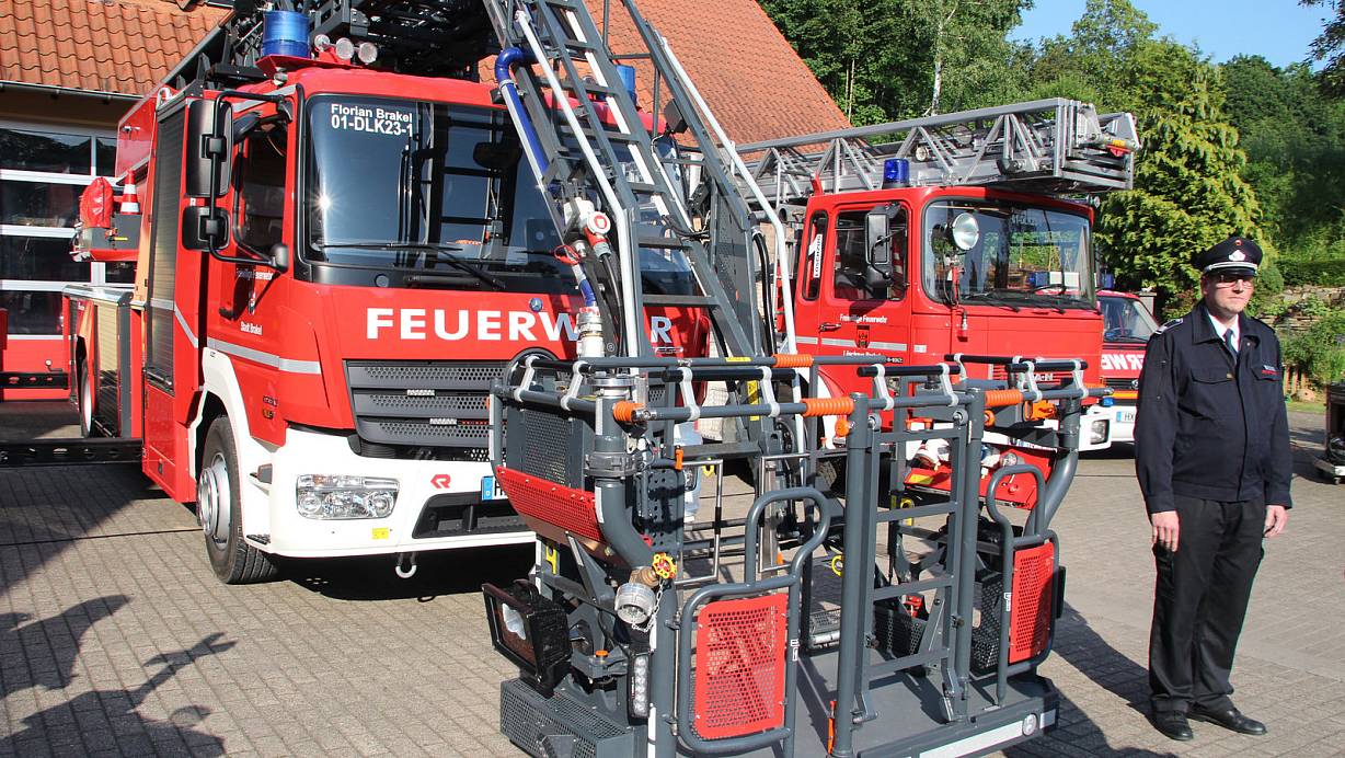 Fahrzeugwechsel: Das neue Drehleiterfahrzeug (l.) ersetzt das bisherige, das nach 34 Dienstjahren nun ausgemustert wird. | © Burkhard Battran