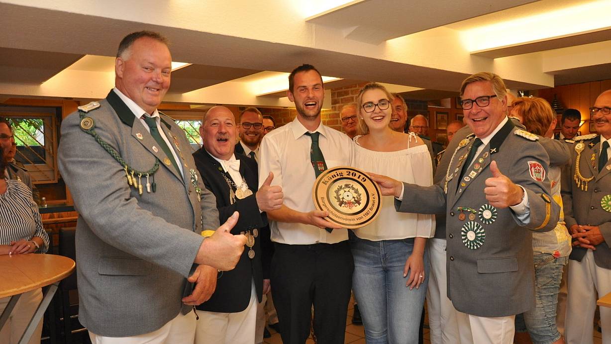 Großer Jubel brach im Schießstand aus, als Oberst Karl-Heinz Neu den jungen König präsentierte. Der 25-jährige Brakeler Berufskraftfahrer ist im dritten Zug aktiv und seit neun Jahren Mitglied beim BSV Brakel. „Mit Max Menne haben wir seit langem wieder einen jungen König an der Spitze der Schützen", meinte Oberst Neu. Schon der Vater des jungen Schützenkönigs, Karl-Heinz Menne, errang 2011 die Königswürde. „Junge, dass du das geschafft hast", freute er sich und nahm seinen Sohn in die Arme.