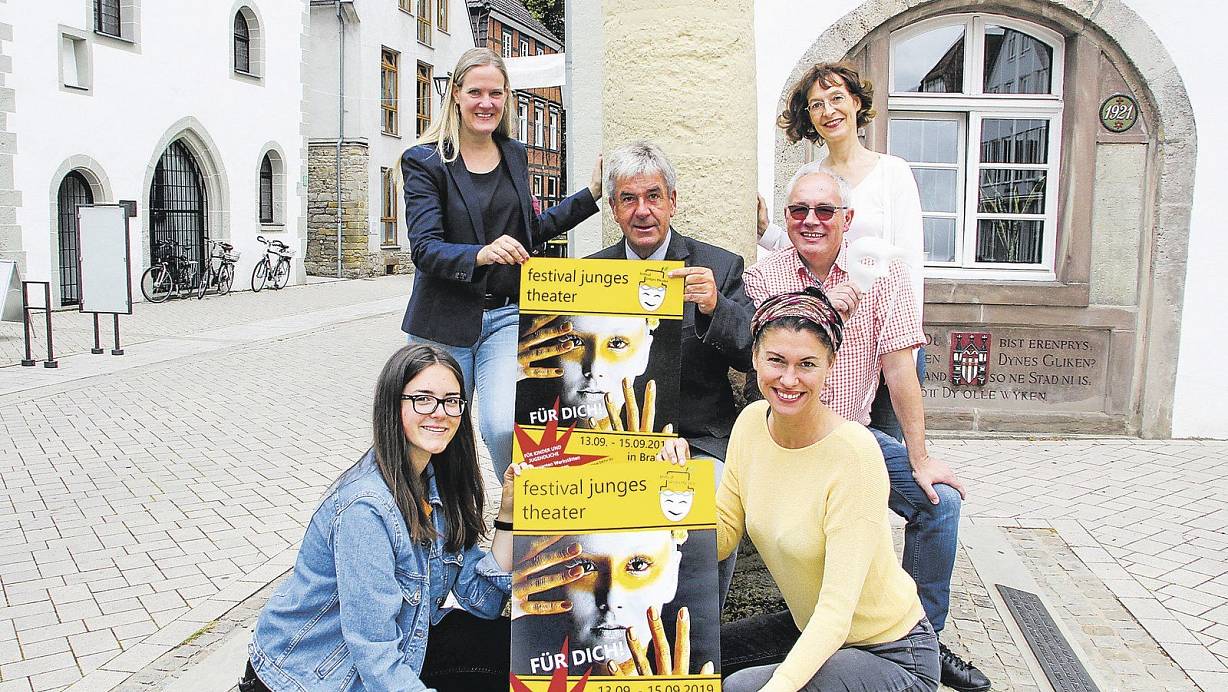 Präsentieren das Projekt: Jule Mende (v. l.) und Miriam Scholz, Bürgermeister Hermann Temme, Maria Frese, Gerhard Antoni und Sabine Teichert. | © Burkhard Battran