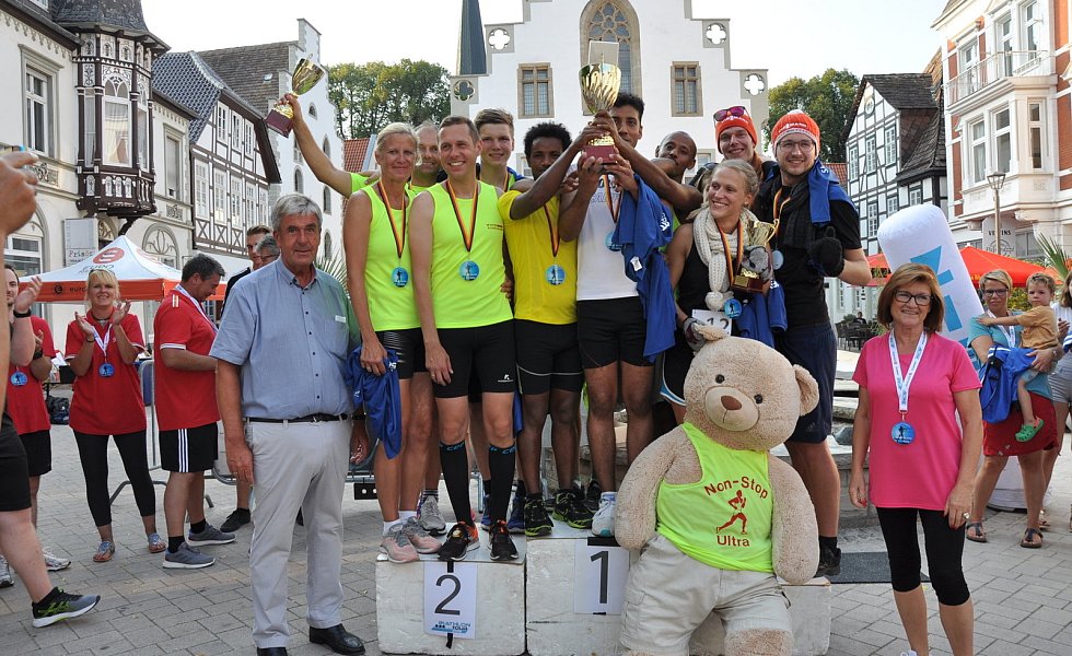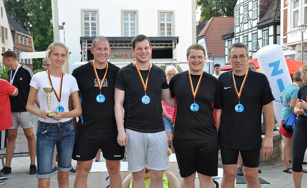 „Die Stimmung war toll, die Zuschauer begeistert und die Teilnehmer mit großem Engagement dabei", fasste Bremer zusammen. Das bestätigte auch Bürgermeister Hermann Temme, der die Siegerehrung vornahm. „Das war eine gelungene Premiere. Das schreit förmlich nach Wiederholung", meinte er. Veranstalter des ersten City-Biathlons war der Werbering Brakel.