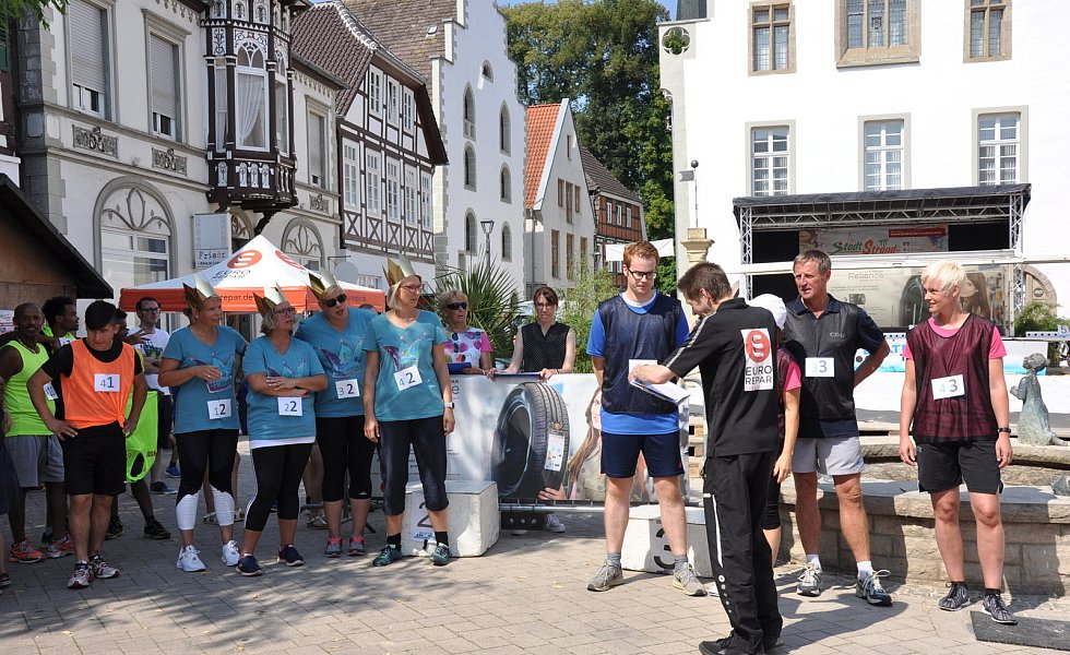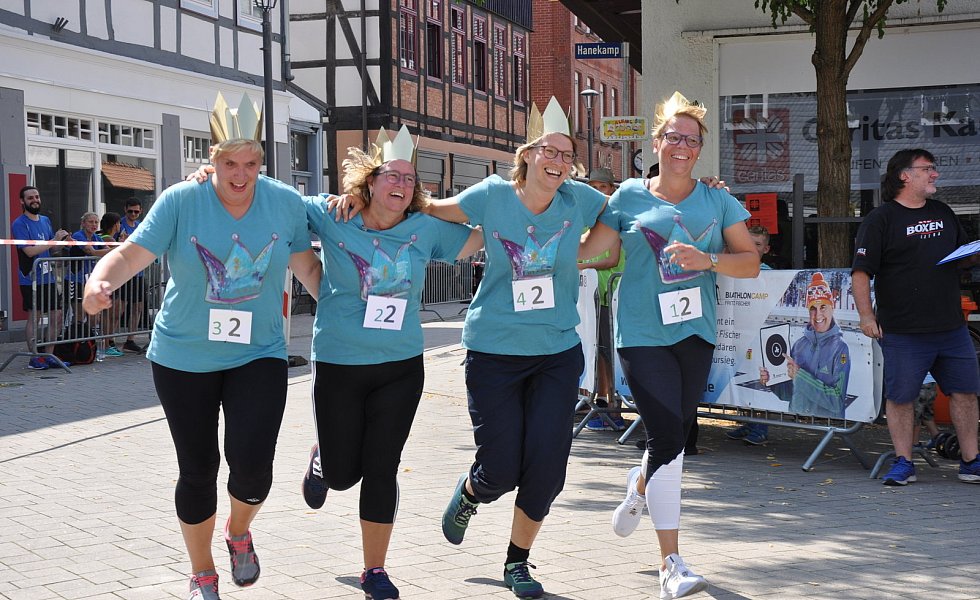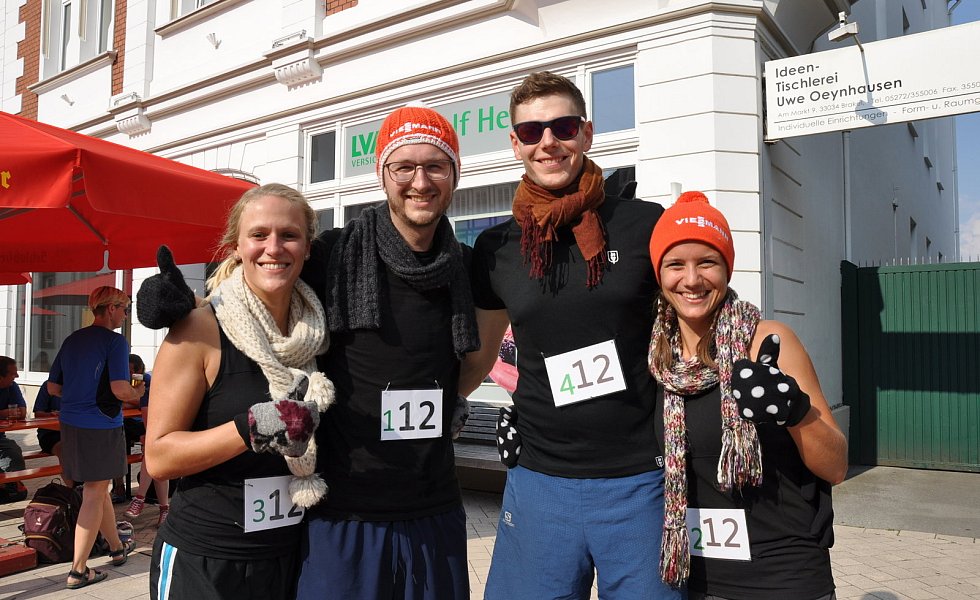 Gleich mit zwei Teams war die Brakeler Stadtverwaltung vertreten. Zudem waren auch zwei Flüchtlingsmannschaften mit von der Partie. Sie alle brachten eine große Portion Ehrgeiz, aber auch ganz viel Spaß an der Sache mit. Einige Teilnehmer hatten sich für dieses Sport-Event verkleidet. Beispielsweise ging das gemischte Team „Warum liegt hier kein Schnee" mit Pudelmütze, Schal und Handschuhe an den Start. Die „Riesel Royals", vier Frauen, traten mit Krone und Prinzessinnen-T-Shirt auf. Start und Ziel war der Stadtstrand am Marktplatz. Die 200-Meter-Strecke musste zweimal gelaufen werden, bevor es ans Schießen ging.