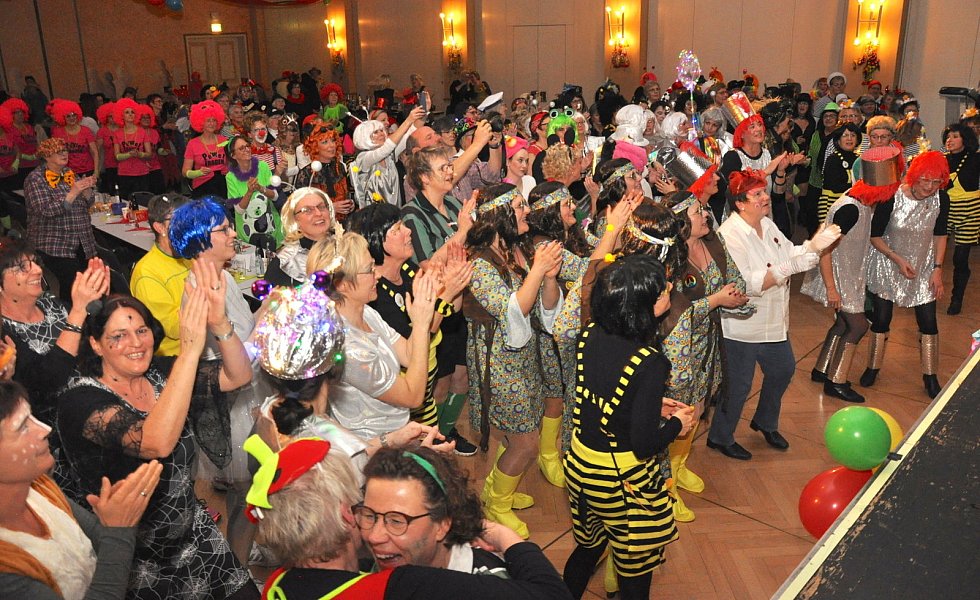 Ähnlich das närrische Treiben beim Playback-Auftritt „Pietro Lombardi und Giovanni Zarella“ mit Mechthild Wiegand und Claudia Fähnrich. Für Heiterkeit sorgten Uschi Scholtissek und Ingrid Schäfer mit dem Loriot-Sketch „Ich will hier nur sitzen“. Super gut kam zudem die Tanzdarbietung der „Wilden Hühner“ vom Karnevalsverein „Brakel Radau“ an. Frenetischer Applaus und eine Rakete waren der Dank des jecken Publikums, das sogleich eine Zugabe forderte.
