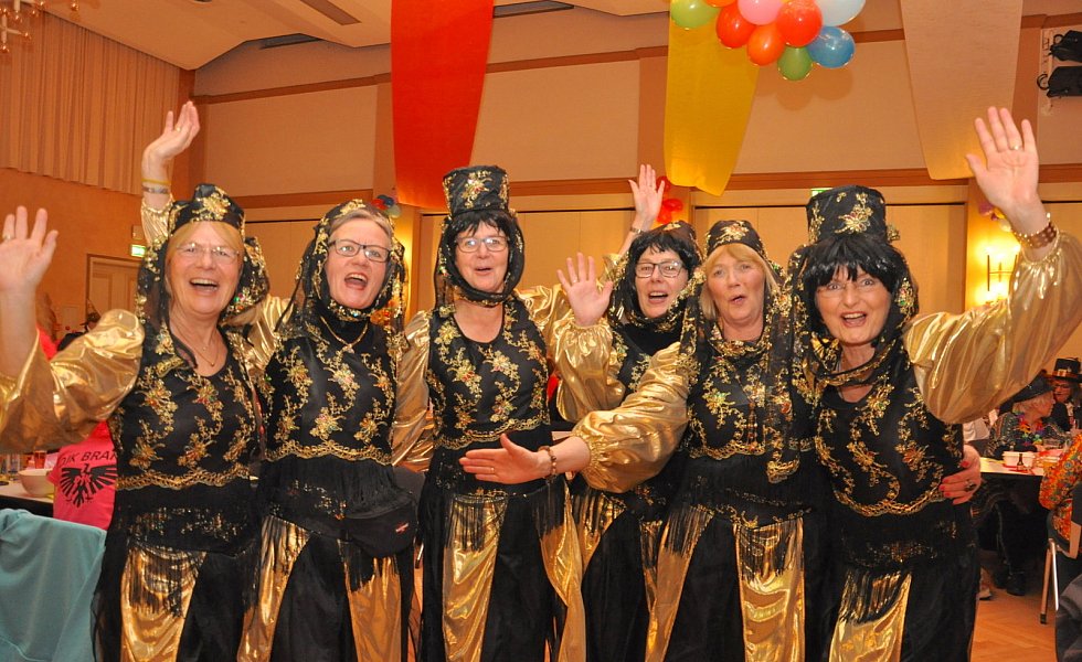 Dies galt auch für die kfd-Tanzgruppe, die unter anderem als „Golden Girls“ mit einem Seniorenmedley sowie mit einem „Tritsch Tratsch Luftpumpenkonzert“ begeisterten. Nicht zuletzt sorgte die Saalpolonaise für großen Spaß. Der Brakeler kfd-Karneval – ein Grant für volles Haus und super Stimmung.