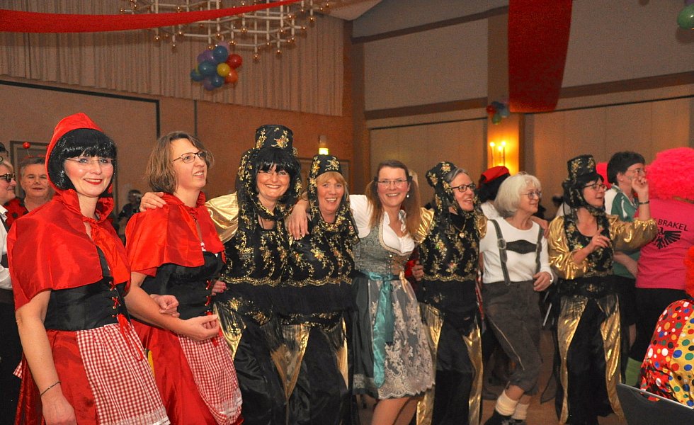 Brakel. „kfd-Ladies Night“ – das Motto war Programm. Einmal mehr sorgen die Akteurinnen der Katholischen Frauengemeinschaft Brakel für einen fantastischen Abend in der Stadthalle. Mit Suppe und Partybrötchen gestärkt, genossen 250 fantasievoll gekleidete Närrinnen Sketche, Tanz und Gesang. Da schunkelten coole Space-Girls mit rosa Power Frauen und Harems-Damen, tanzten Hippie-Girls mit summenden Annenbienen völlig losgelöst im Takt der Musik des Duos „2-4 Dance“.