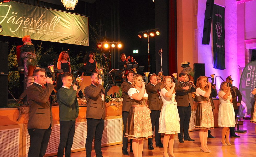 Brakel. Weiße, unter der Decke aufgespannte Tücher, große Kerzenleuchter auf den Tischen, dazu sanftes Licht: Die effektvolle Dekoration sorgte für eine echte Ballatmosphäre in der sonst eher nüchtern wirkenden Stadthalle. Rund 500 Gäste erlebten einmal mehr einen fantastischen Kreisjägerball, den der Hegering Brakel organisierte. „Corona bleibt heute draußen vor der Tür", waren sich Britta von Weichs, Vorsitzende der Kreisjägerschaft Höxter, und Josef Milleg, Vorsitzender des Hegerings Brakel, einig.