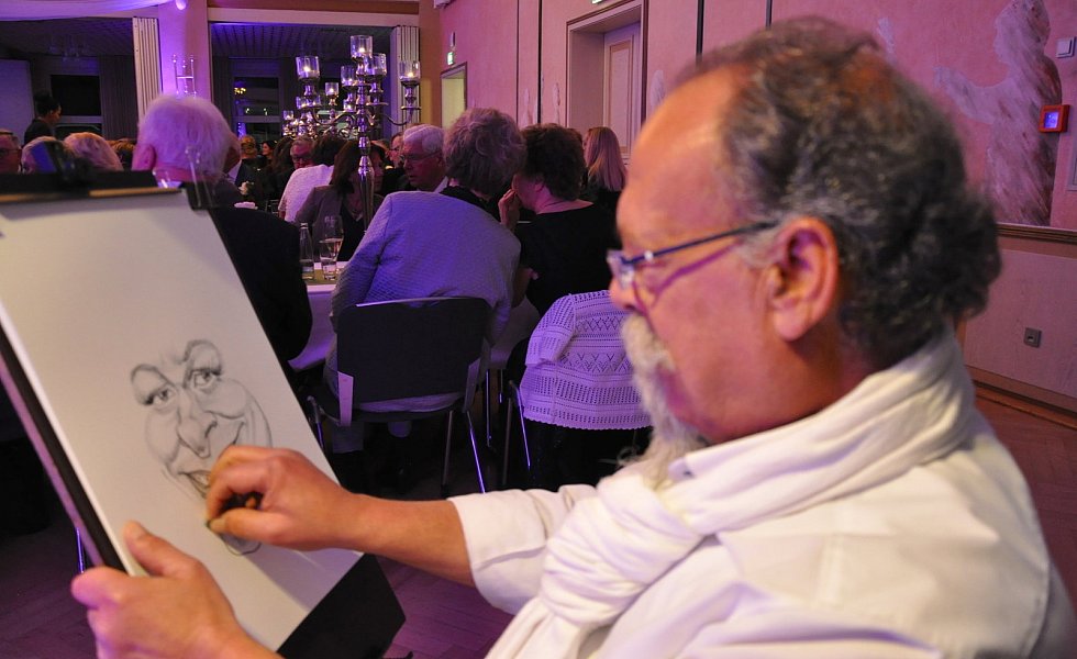 Mit Witz und Charme führte Daniel Winkler durch den Abend – eine abwechslungsreiche und kurzweilige Mischung aus Tradition und Showevent. Aufmerksamkeit erregte Live-Karikaturist Samir Georgy aus Krefeld, der auf Wunsch die Gäste mit schwungvollen Kohlestrichen porträtierte. Ein Höhepunkt des Abends war der furiose Auftritt des Duos „Rollecsos" aus Berlin, das unter anderem auch schon bei der Casting-Show „Das Supertalent" auftrat.