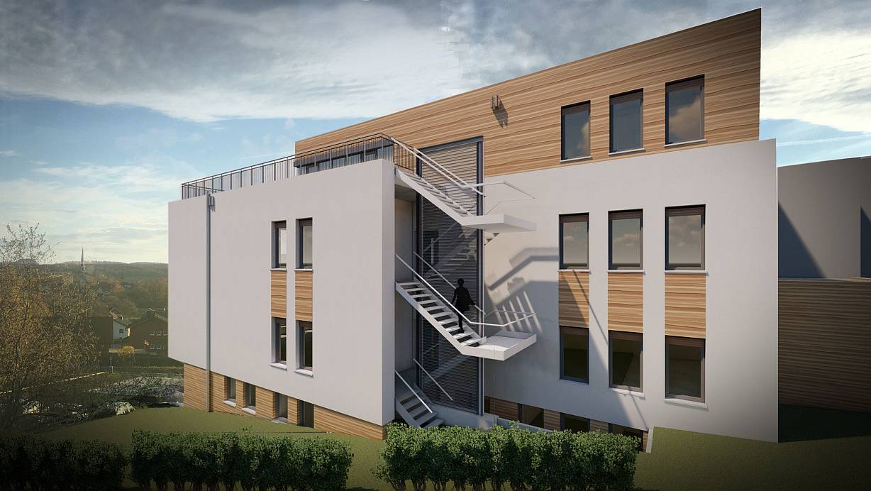 Das Bildungszentrum Weser-Egge an der Danziger Straße in Brakel wird um den dreigeschossigen Anbau erweitert. | © KHWE/Büro Krekeler