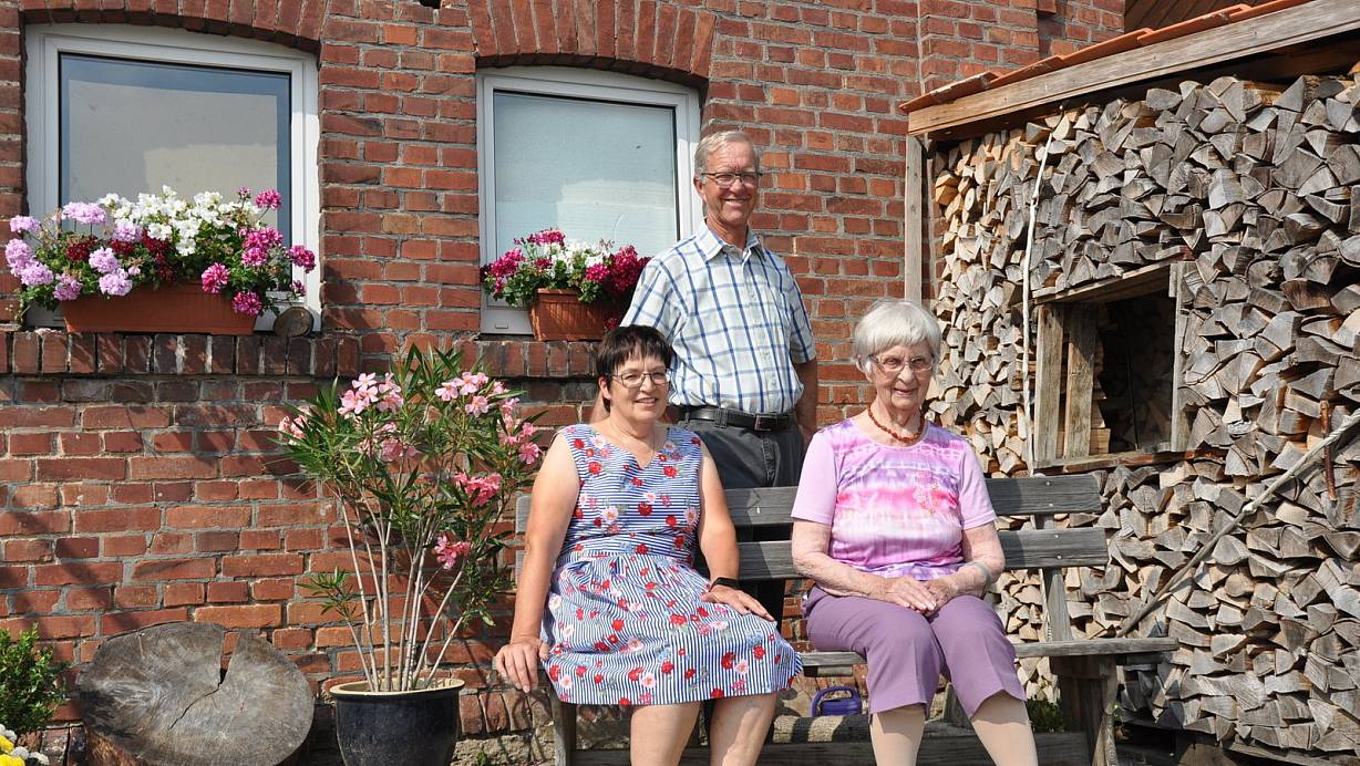 Elisabeth Hake (von rechts) begeht in diesem Jahr ihr 70. Thronjubiläum. Ihr Sohn Hans-Bernd Hake und Ehefrau Petra waren vor 25 Jahren das Königspaar in Schmechten. | © Helga Krooß