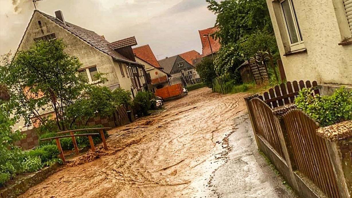 Vollgelaufenen Keller und Schlamm auf den Straßen.