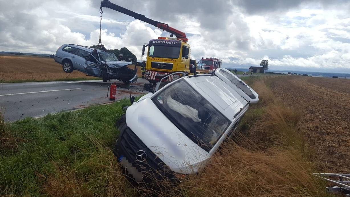 Der Mercedes-Vito landete durch den Zusammenprall im Straßengraben. | © David Schellenberg