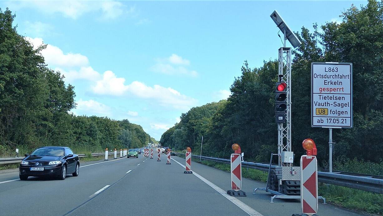 Per Ampel geregelt: Die Verkehrssituation auf der Nethetalbrücke bei Brakel. | © Simone Flörke