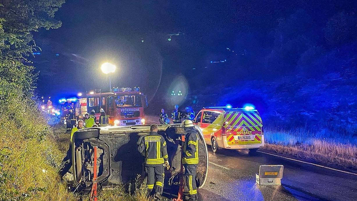 Der Renault selbst war nicht mehr fahrbereit und musste abgeschleppt werden. Für die Versorgung der Betroffenen, die Unfallaufnahme und die Räumung der Straße musste die B 64 bis gegen vier Uhr voll gesperrt werden.