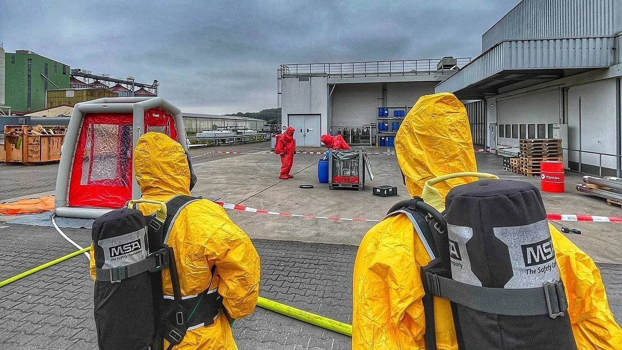 Ein Behälter mit ätzender Flüssigkeit ruft den Erkundungs- und Dekontaminationszug im Kreis Höxter auf den Plan.