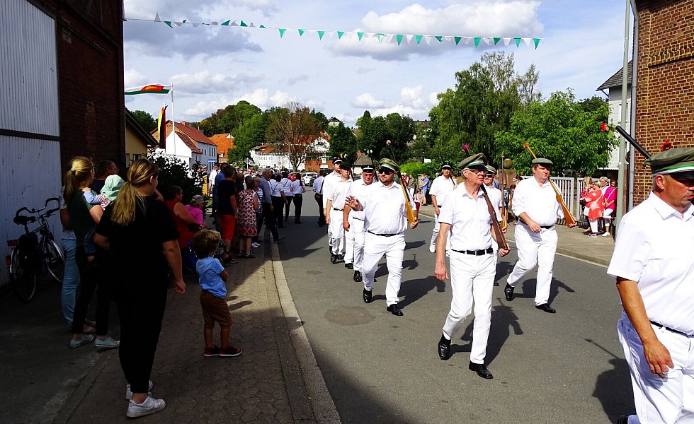 An den Straßenrändern hatte sich das ganze Dorf versammelt, um sich den Festumzug anzusehen. Auch Brakels Bürgermeister Hermann Temme schaute vorbei und wünschte der St.-Josef-Schützengilde in seiner Funktion als Festredner ein wunderbares Schützenfest.