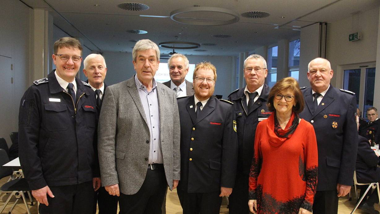 Wehrführer Seven Heinemann (l.) mit den offiziellen Vertretern und Ehrengästen. | © Burkhard Battran