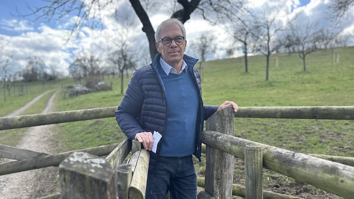 Schön hier: Ewald Hanisch zeigt, wie Wanderer auf die Obstwiese gelangen, die auch als Wiese für Hochlandrinder genutzt wird. | © Ralf T. Mischer