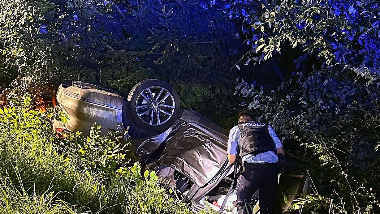 Der 24-Jährige hatte sich mit seinem Auto überschlagen und kam im angrenzenden Straßengraben auf dem Dach zum Liegen. | © Feuerwehr Brakel