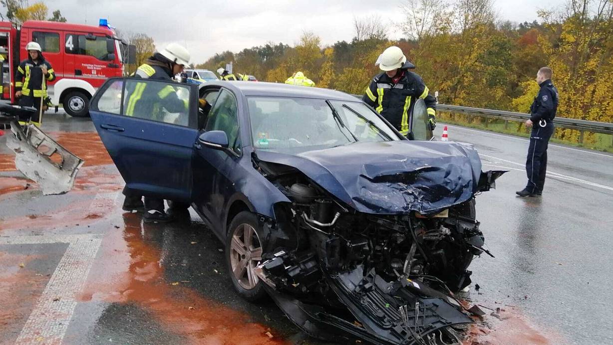 Zwei Fahrzeuge kollidieren auf der Bundesstraße. In der Folge wird auch ein Lkw mit in den Unfall hineingezogen.
