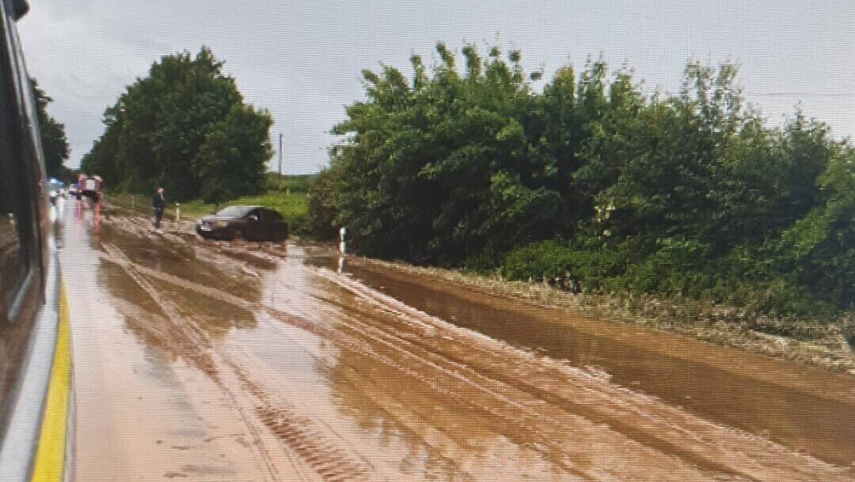 Denn zwischenzeitlich hatte sich bereits ein Auto festgefahren gehabt. Ab dem Mittwochabend dann konnte zumindest wechselseitig einspurig der Verkehr in dem Bereich wieder laufen – allerdings mit Tempobegrenzung auf 50 und Überholverbot. Wie beim Schneeschieben wurde die Fahrbahn mit schwerem Gerät vom Matsch befreit, damit sie sicher befahrbar wird.