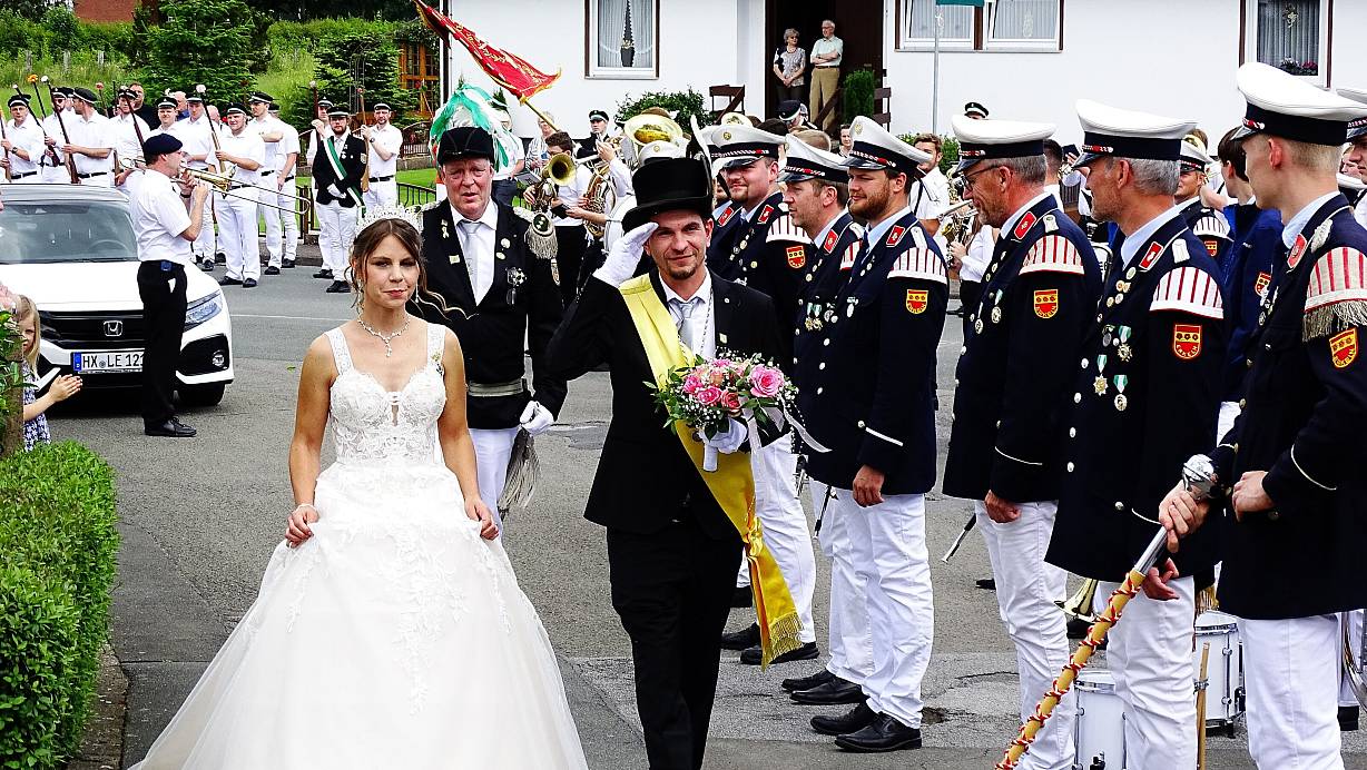 Eduard Lehmann und Gina Quade sind der Mittelpunkt des großen Festumzugs der St.-Johannes-Schützen in Brakel-Hembsen.