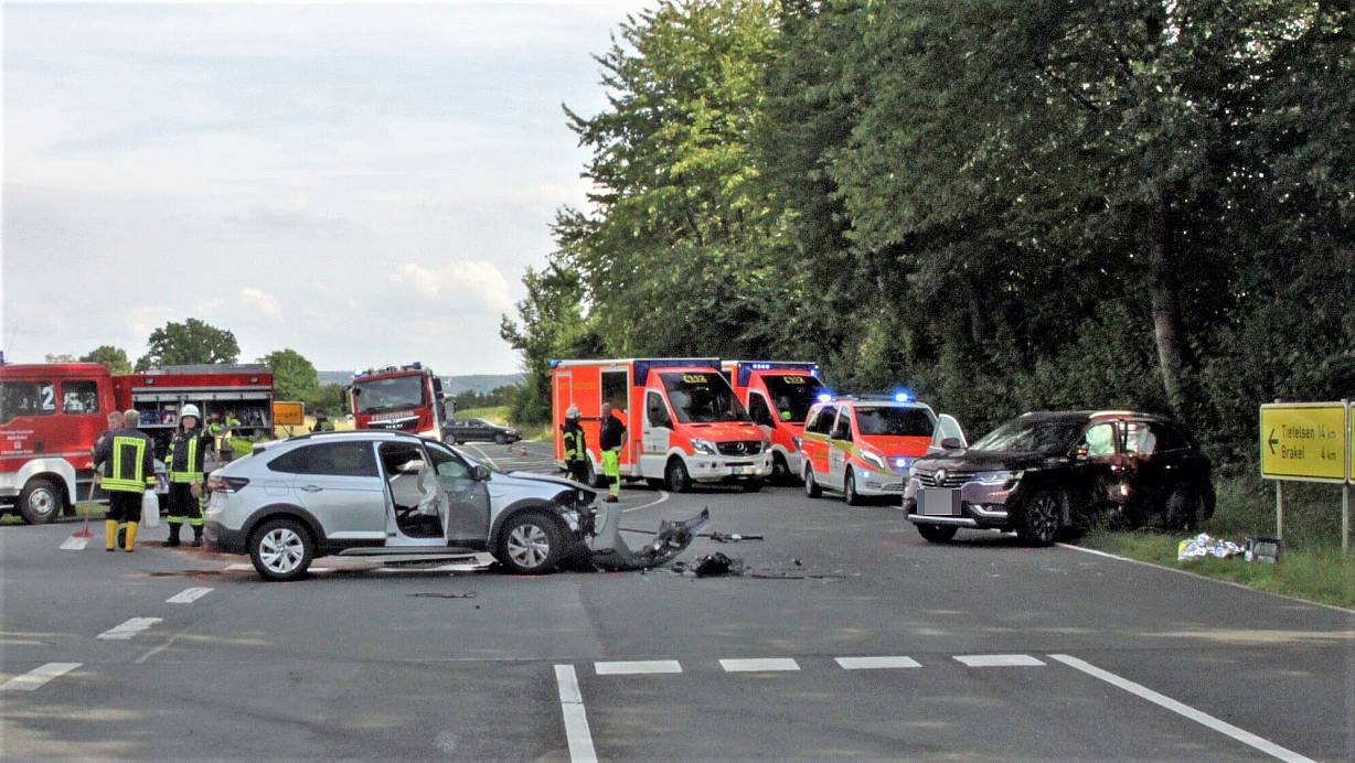 Brakel. Der Personen wurden bei einem Unfall in der Nähe von Brakel verletzt, eine davon schwer. Das teilt die Polizei am Freitag mit. Am Donnerstag (18. Juli), befuhr um 16.55 Uhr ein VW Taigo von der Bundesstraße 252 kommend den Abfahrtsarm zur L863 und wollte an der Einmündung nach links in Richtung Brakel abbiegen.