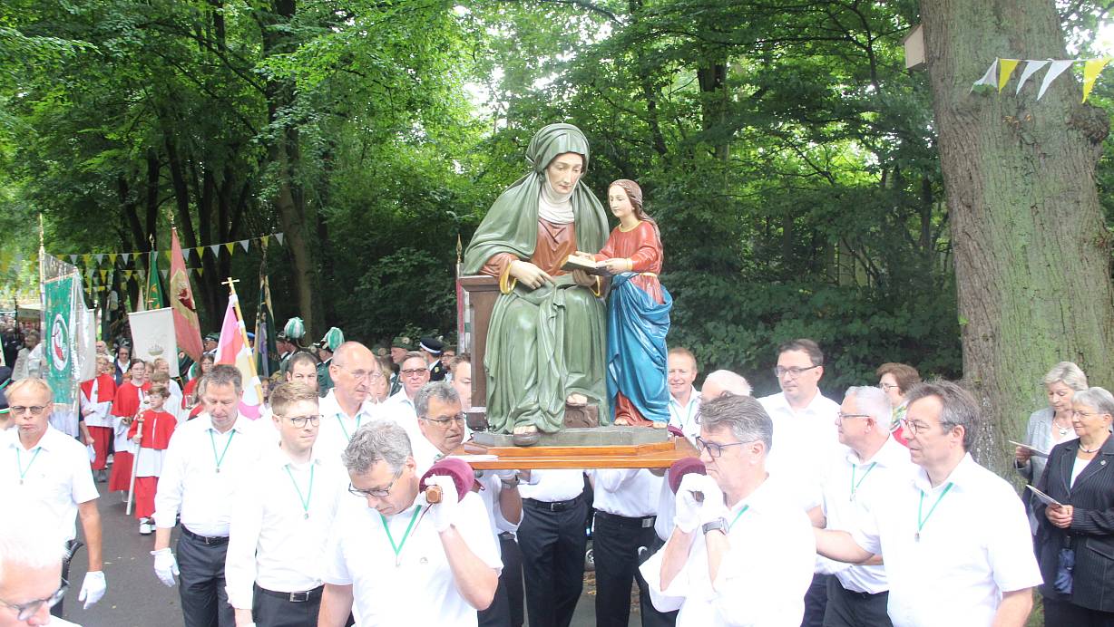 Insgesamt fünf Annaträger-Viererteams tragen die 150 Kilogramm schwere Annenstatue über die 1,5 Kilometer lange Prozession. | © Burkhard Battran