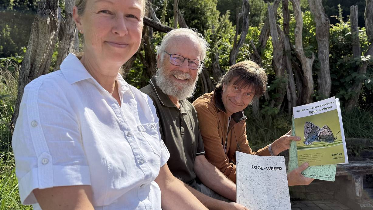 Ralf Liebelt, Burkhard Beinlich und Barbara Neubacher vom Naturkundlichen Verein Egge-Weser möchten gemeinsam mit Freunden den Vereinsgeburtstag feiern. | © Ralf T. Mischer