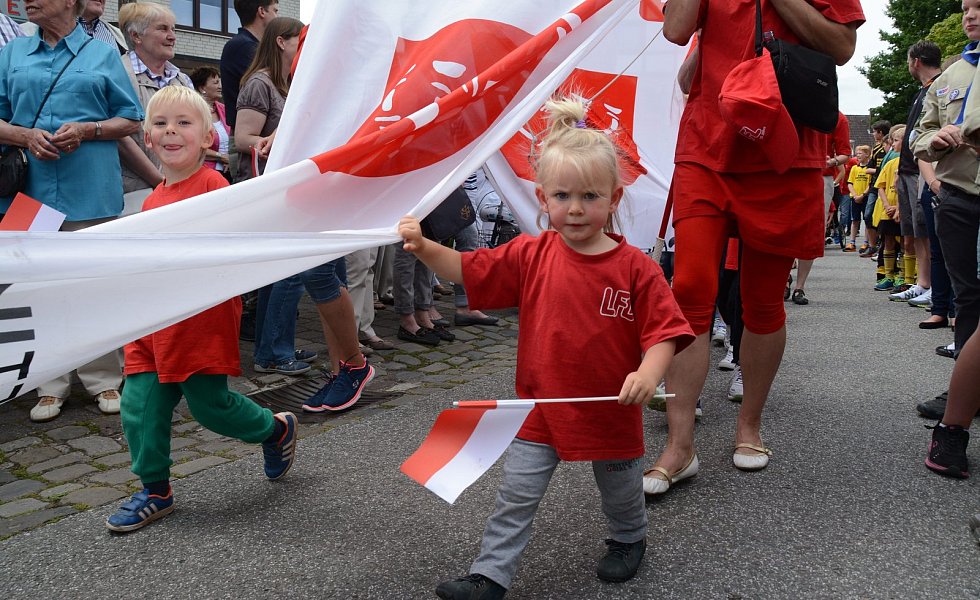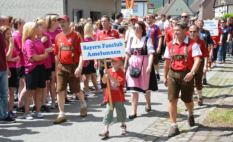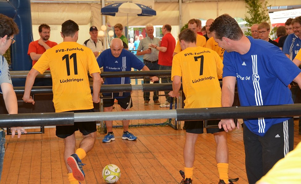 Viele Attraktionen für Groß und Klein bot der Samstag mit Menschen-Kickerurnier, Kirmesbetrieb und weiteren spektakulären Unterhaltungen. Bernd Gröne und Werner Ferlemann vom Festausschuss freuten sich über den großen Andrang. Gemeinsam mit den Lüchtringer Fanclubs FC Bayern Weserbergland-Bazis, FC Schalke Solling Knappen sowie Festwirt Arne Bergmannshoff hatten sie ein buntes Programm zusammengestellt."