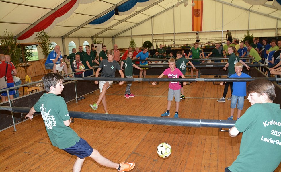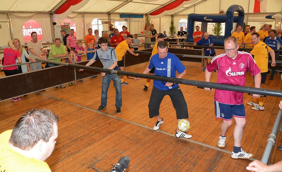 Beim Menschen-Kickerturnier siegten schließlich die Seniorenkicker vor dem Bayernfanclub und den Juniorentrainern.