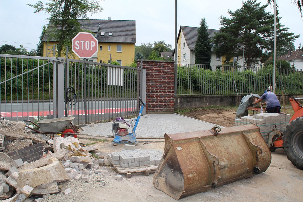 Eingang für Fußgänger: Der Bereich, wo jetzt das Stop-Schild steht, wird der Durchgang für Fußgänger. Er wird extra breit, damit auch Zwillings-Kinderwagen hindurchpassen. - © Amina Vieth