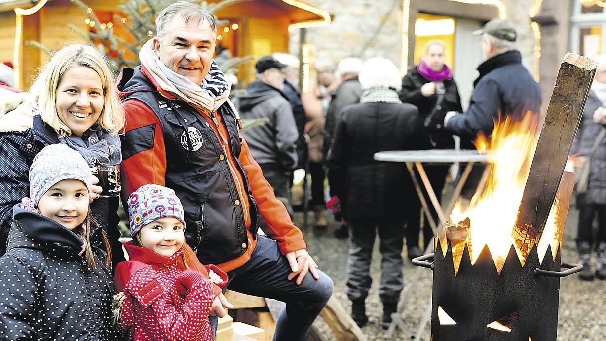 Familie Mann genießt das Flair am offenen Feuer. Von links: Verena und Thomas Mann mit ihren Töchtern Tia-Maria und Pauline | © Thomas Kube