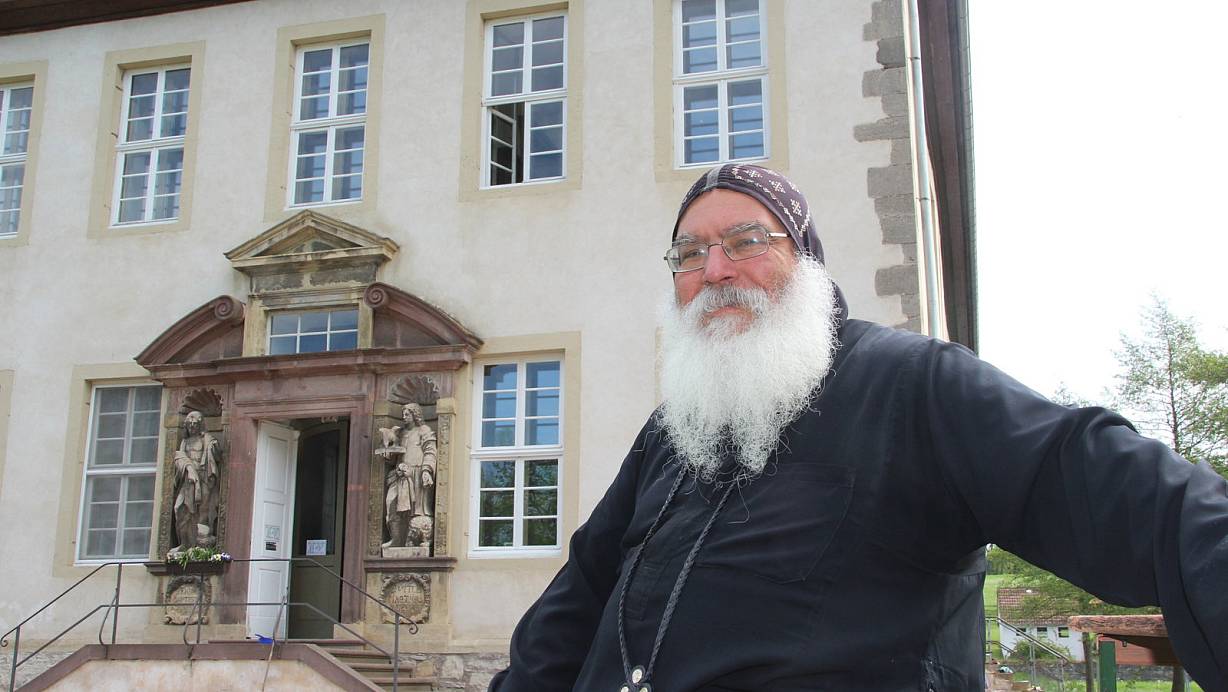 Pflegt eine offene Tür und ein offenes Ohr: Bischof Anba Damian vor dem Kloster in Brenkhausen. | © Amina Vieth
