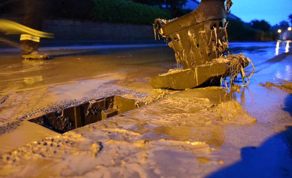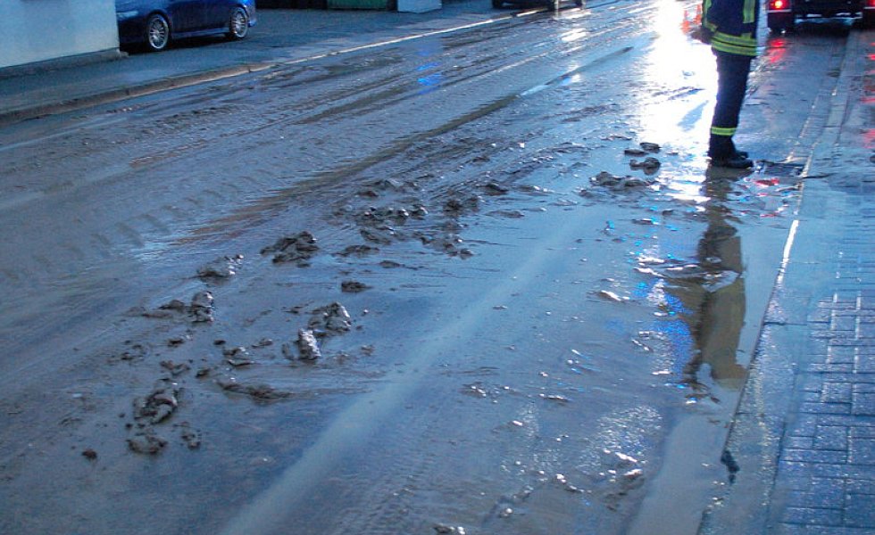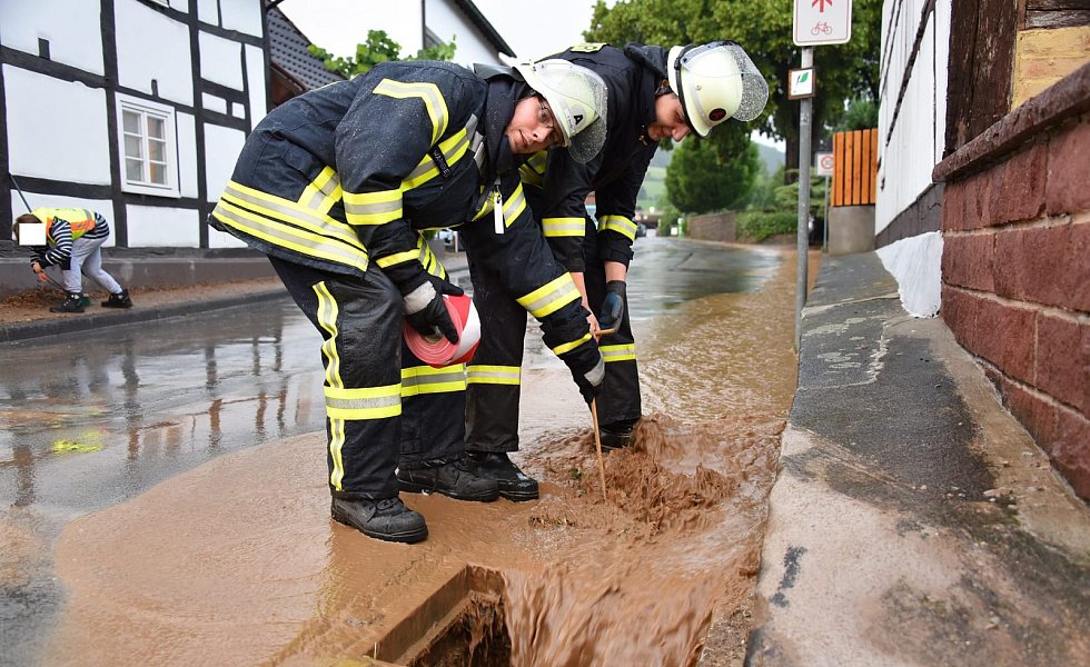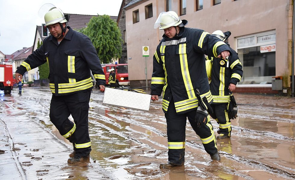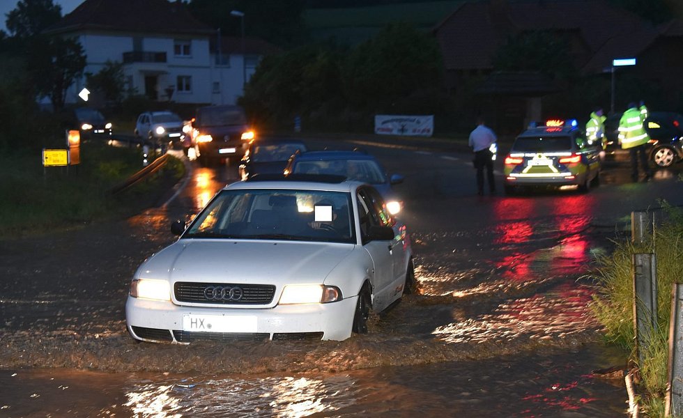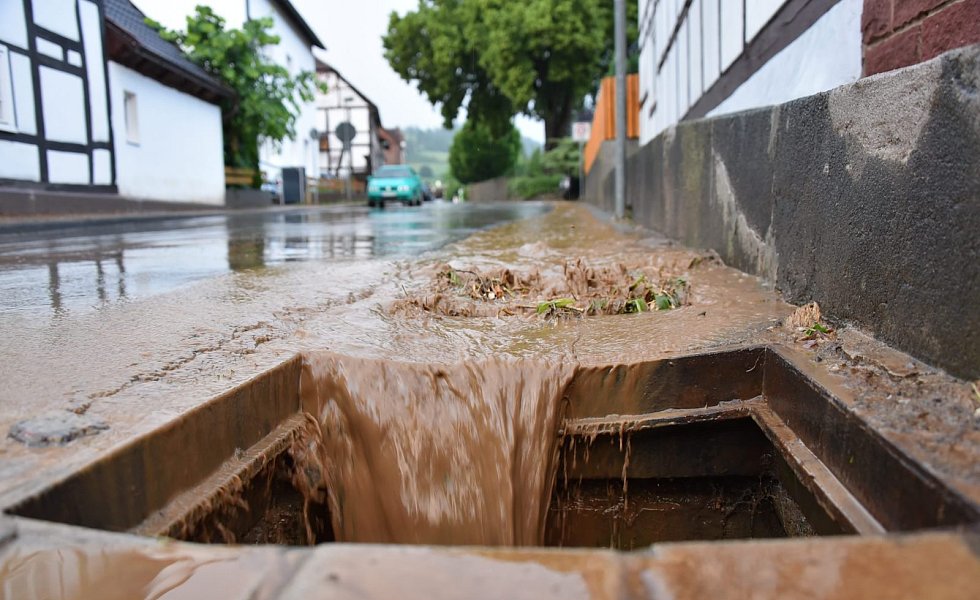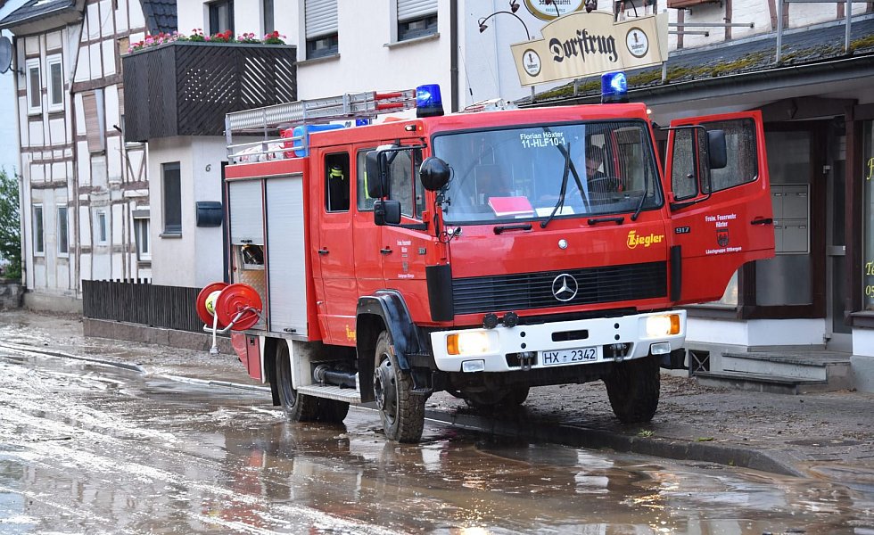 Der heftige Starkregen hatte die Bahnhofstraße binnen weniger Minuten in einen reißenden Fluss verwandelt, berichteten Anwohner. Vor allem der Schlamm, der von den Hängen in das Dorf gespült wurde, machte den Einsatzkräften der Feuerwehren zu schaffen. Bis tief in die Nacht waren Feuerwehrleute damit beschäftigt, die Fahrbahn zu reinigen. Auch viele Anwohner halfen mit.