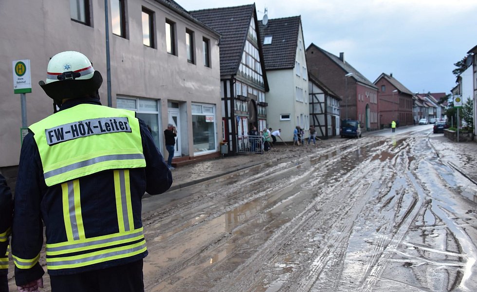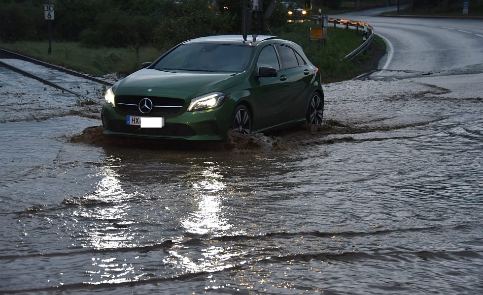 Ottbergen. Ein heftiges Unwetter hat am Freitagabend in Ottbergen Straßen mit Wasser und Schlamm überflutet und Keller volllaufen lassen. Die völlig verschlammte Ortsdurchfahrt musste komplett über viele Stunden gesperrt werden.