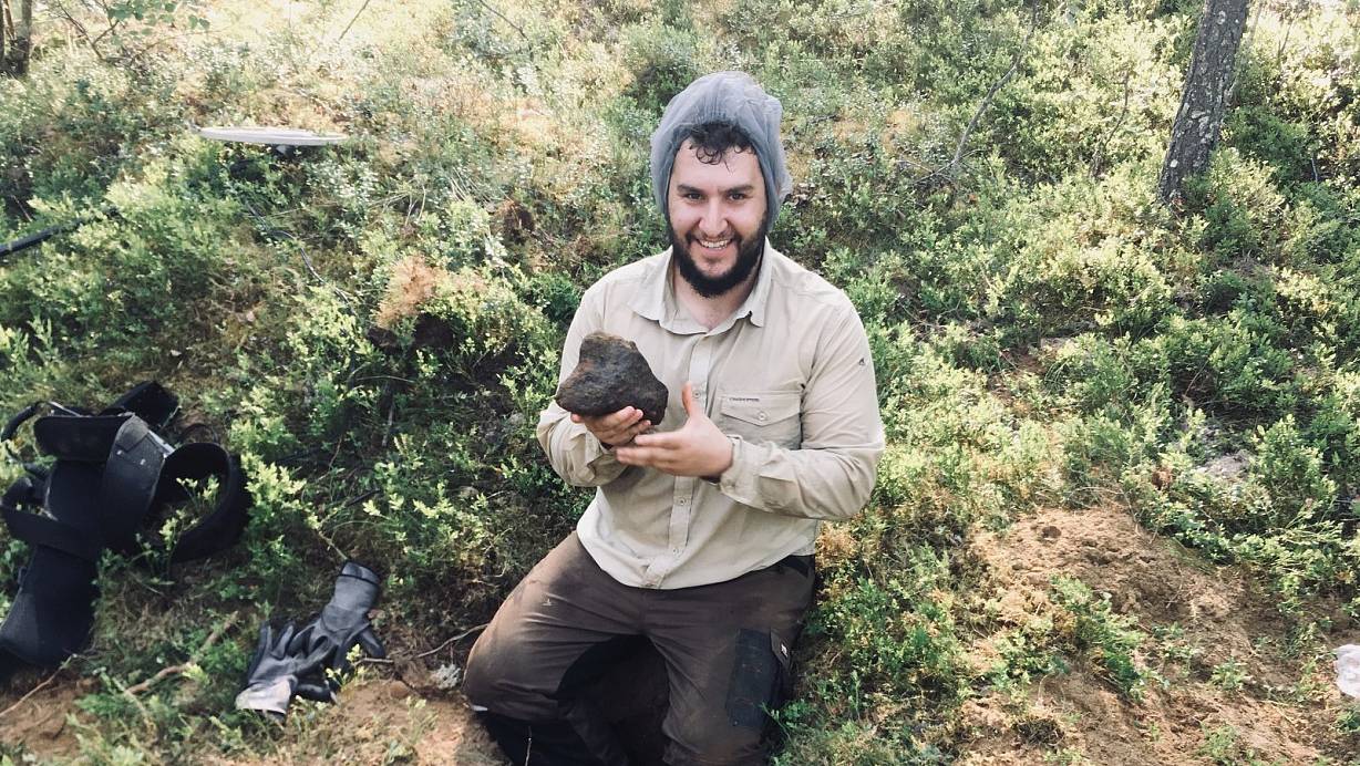 Während andere nach Schweden zum Fischen fahren, macht sich Cataldi mit Metalldetektoren ausgerüstet in den Wäldern auf die Suche nach Meteoriten. Muonionalusta, benannt nach dem Meteoriten, heißt das Gebiet in Norbotten County, in dem Cataldi drei Wochen lang unterwegs war. Das Alter des Meteoriten werde auf etwa 4,5 Milliarden Jahre geschätzt, so Cataldi. „Er ist vor etwa 800.000 Jahren auf die Erde gestürzt."