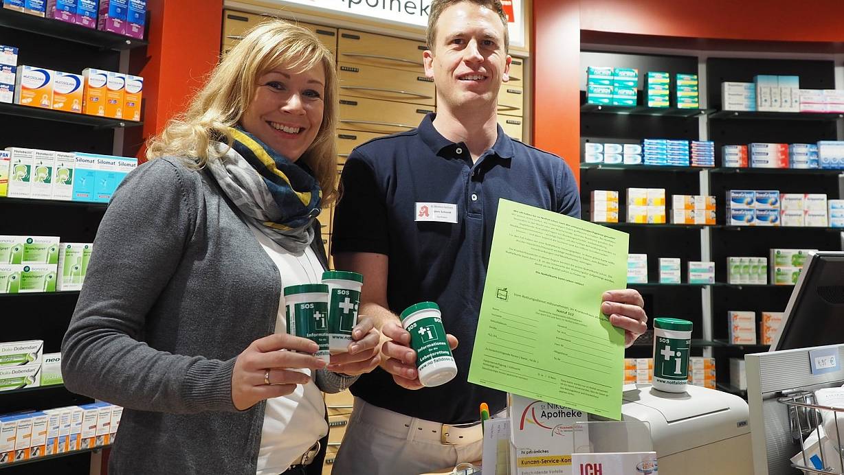 Lebensretter: Ob Notfalldose oder Notfallkarte - beide gibt es in den Apotheken des Kreises Höxter, berichten Anja und Björn Schmidt. | © Josef Köhne