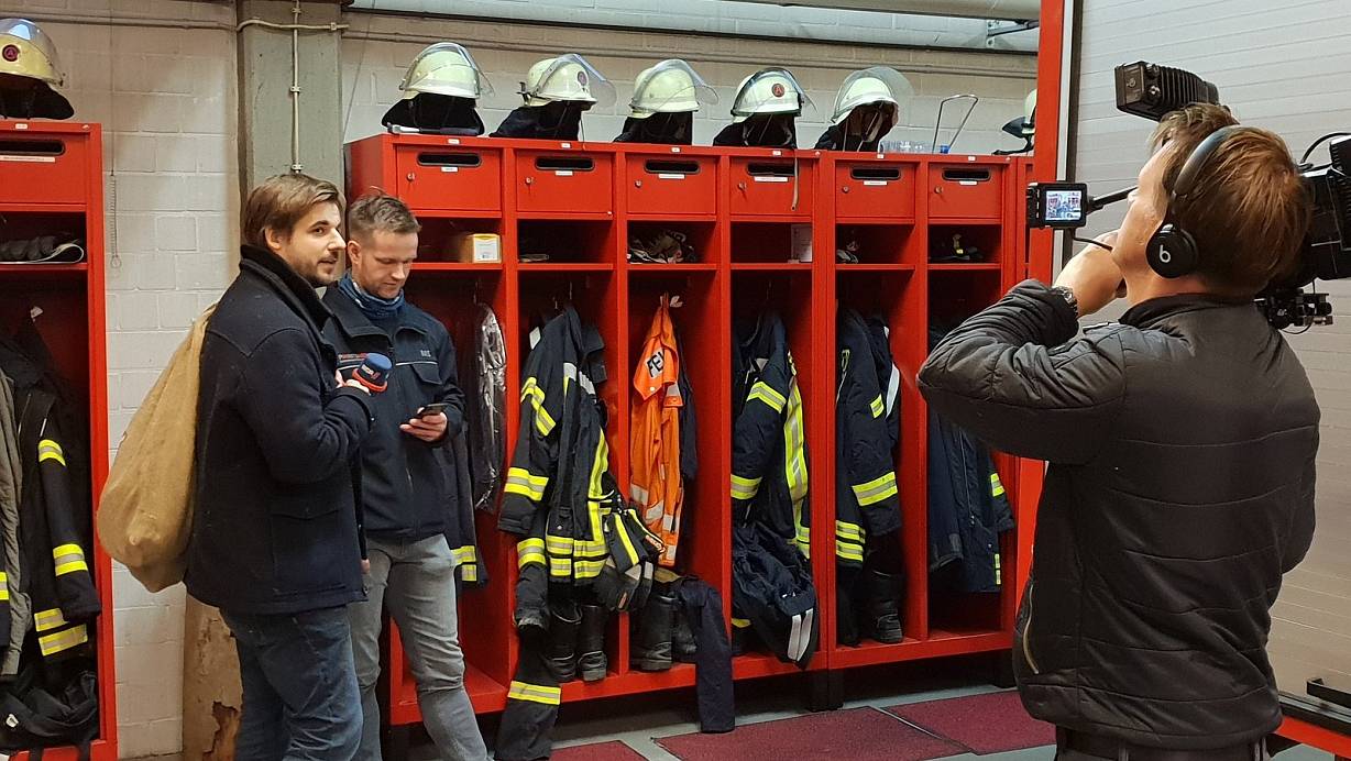 Vorbereitung: Das Team des Fernsehsenders in der Feuerwache mit Mathias Schmidt (Mitte). | © Thomas Kube