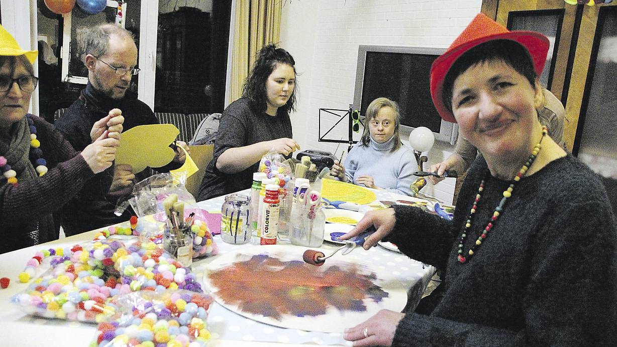 Schön bunt soll es werden: In fröhlicher Runde treffen sich die Bewohner der Einrichtung und bereiten erstmals die Gestaltung eines eigenen Motivwagens vor. | © Burkhard Battran