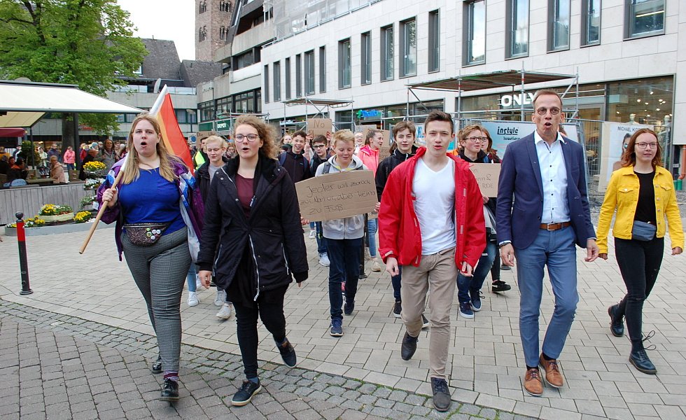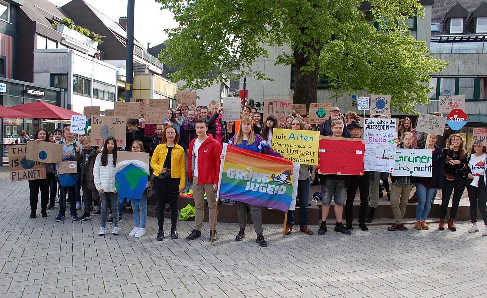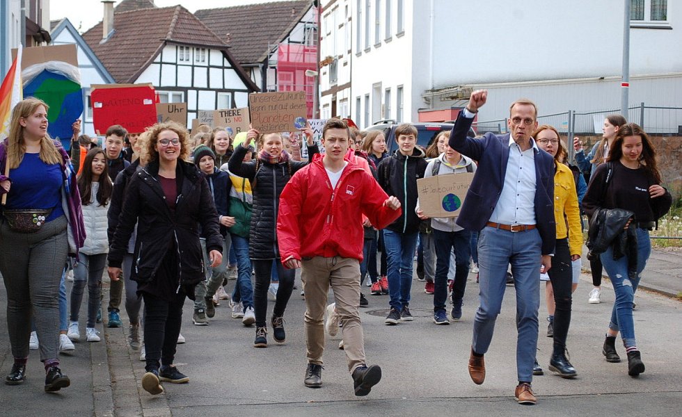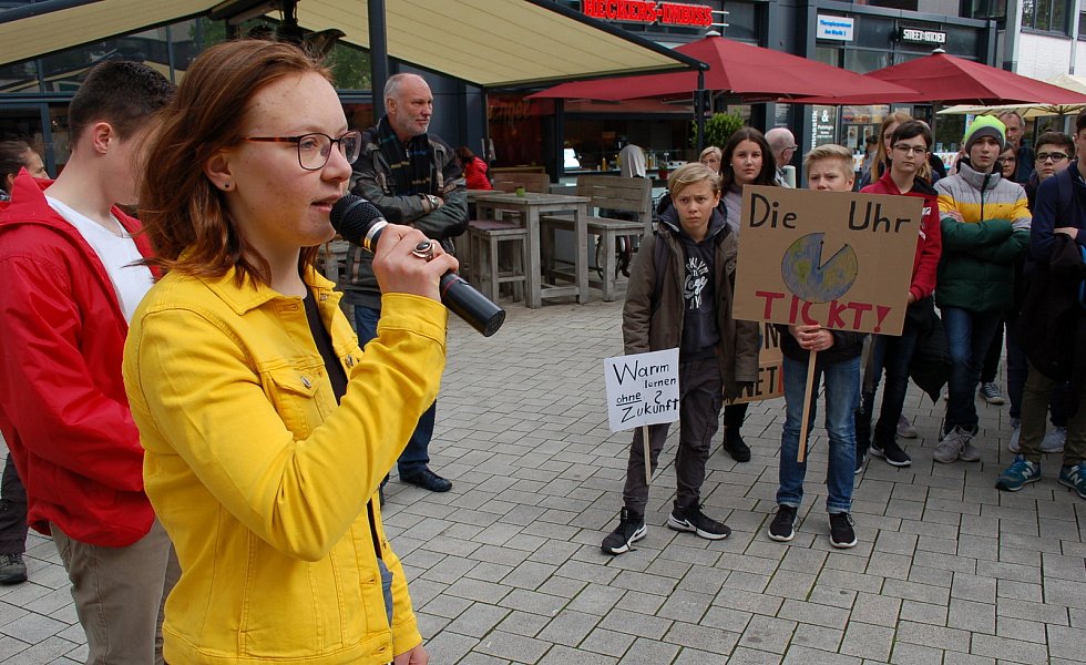 "Wir müssen jetzt handeln und etwas verändern", meinte der Beverunger Gymnasiast Tim Vollert. Jeder Einzelne könne seinen Beitrag leisten. "Weniger Plastik. Statt Auto fahren die Bahn oder das Fahrrad nutzen, und den Kaffee nicht aus Einweg- sondern aus wiederverwertbaren Bechern trinken", nannte er einige Beispiele.