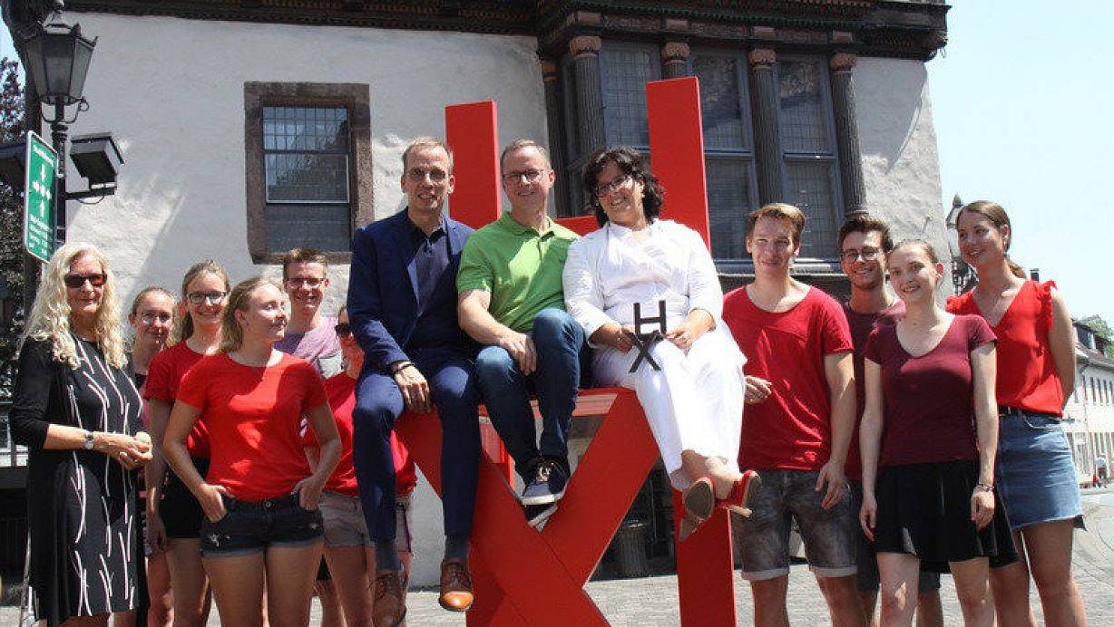 Studierende der technischen Hochschule OWL mit ihrer Professorin Petra Rau (l.) haben das Konzept entwickelt, Baudezernentin Claudia Koch hat sich für den Standort am historischen Rathaus entschieden. | © Hermann Ludwig