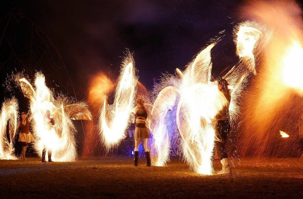 Im Vorprogramm verzaubert zudem eine mystische Pferdeshow im "Apassionata Stil" Groß und Klein. Weißgeborene Barock-Dressurpferde vom Knabstruppergestüt af Wendandi reiten in der Dunkelheit durch Nebelschwaden auf der illuminierten Großen Wiese. Beeindrucke Vorführungen und Erklärungen des deutschlandweit bekannten Gestüts aus Petershagen sorgen für Kurzweil und staunende Gesichter. Die klassische barocke Reitkunst der extrem seltenen Pferde zeigt magische Begegnungen zwischen Mensch und Pferd.