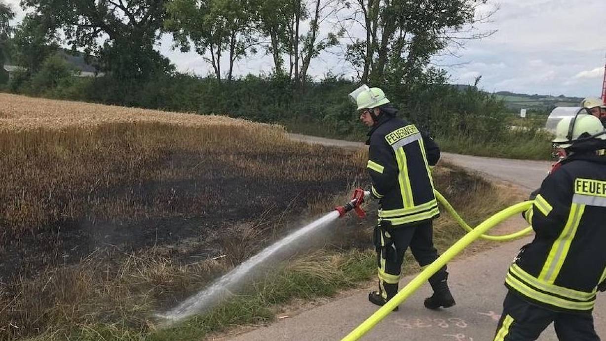 Feuerwehr löscht brennendes Getreidefeld bei Höxter
