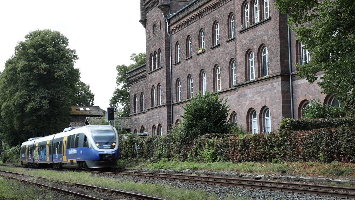 Das Signal steht auf Rot: Ein Zug der Nordwestbahn bei der Vorbeifahrt am alten Corveyer Bahnhof. | © Simone Flörke