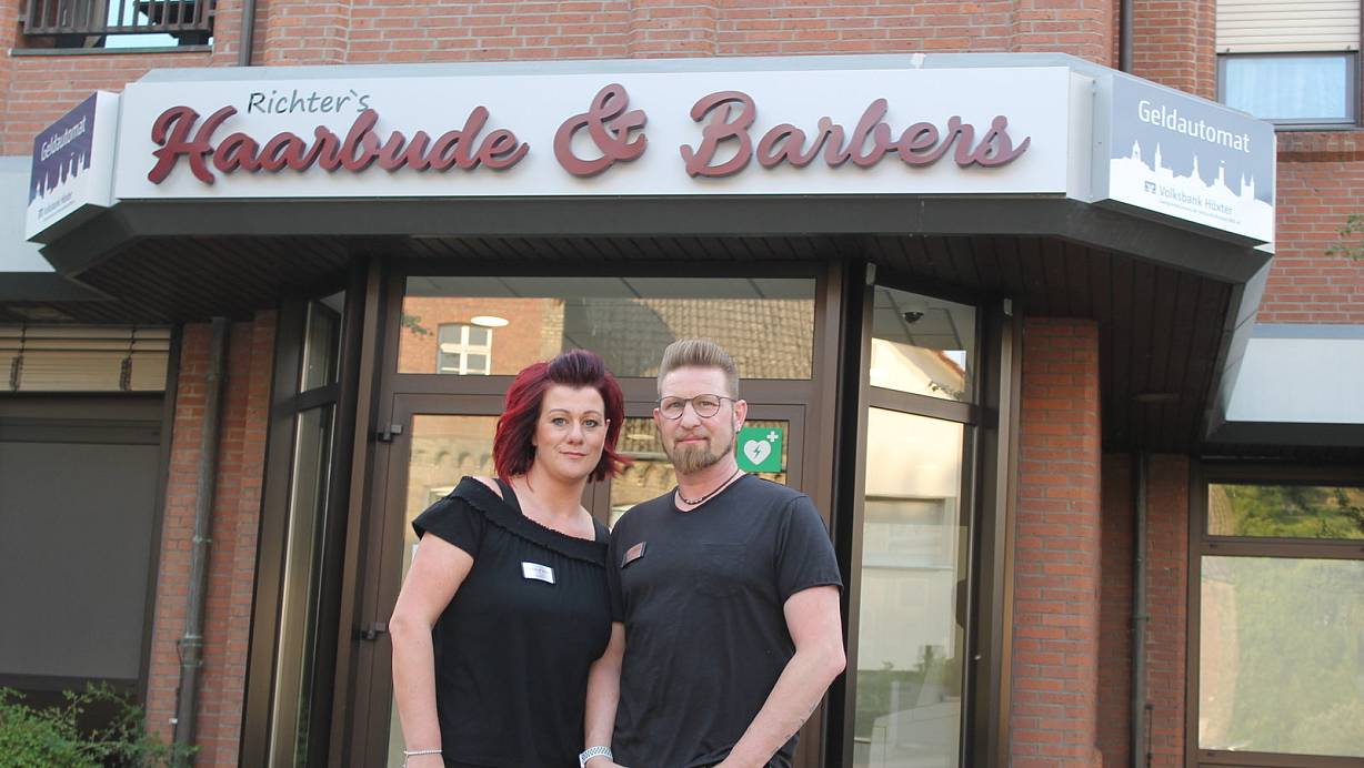 Friseur statt Bankfiliale: Nadine und Carsten Richter vor der neuen Haarbude in Dalhausen, die am 1. September mit einem Tag der offenen Tür eröffnet werden soll.  | © Manuela Puls
