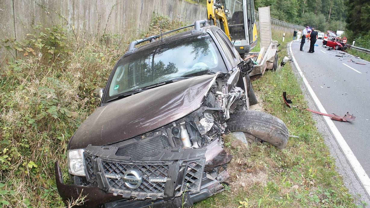 Astra gerät in Gegenverkehr und stößt mit Pick-up und Anhänger zusammen