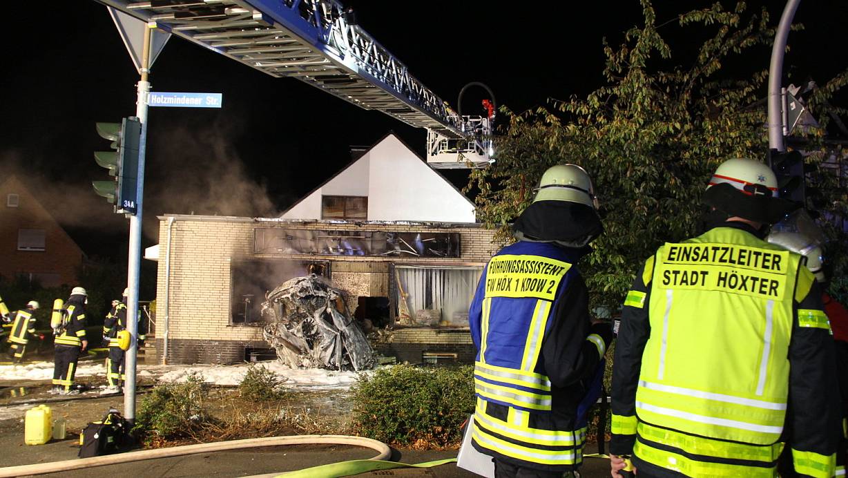 Auto rast in Gebäude und fängt Feuer - Fahrer stirbt im Wagen