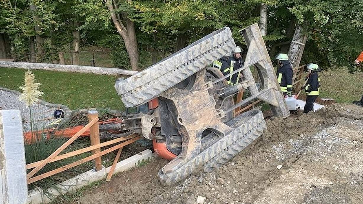 Nach dem Sturz liegt der Bagger auf der Seite. | © Feuerwehr Höxter
