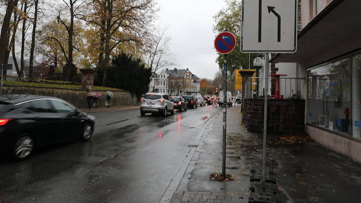 Die Rechts-Abbiegespur von Westerbachstraße auf die B 64 ist gesperrt. | © Simone Flörke